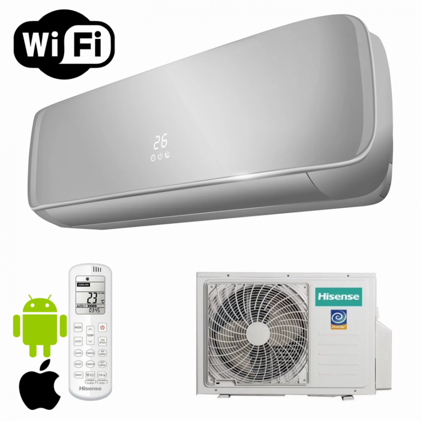 Инвертор, Энергоэффективность класса А,Wi-Fi управление (опционально), 5 скоростей вентилятора, ULTRA High Density, Silver lon, Низкий уровень шума от 22,5дб(А), 4D AUTO AIR, Диапозон работы на обогрев до -15С наружного блока
